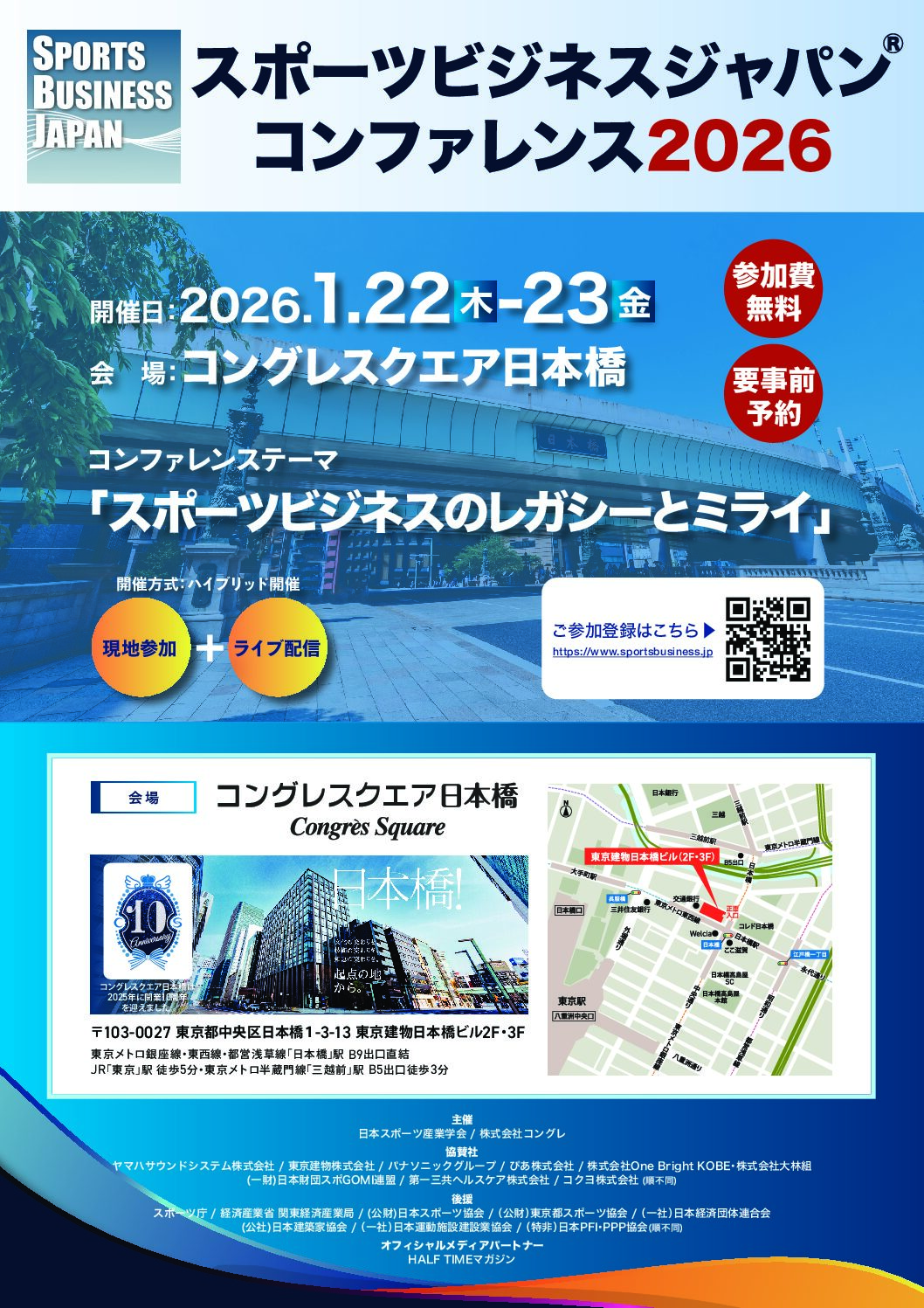 2025.01.17 更新 その他 スポーツビジネスジャパン コンファレンス2025 開催日時2025年2月6日(木)・7(金)・8(土) 開催場所東京都杉並区高円寺北2−14−13 「IMAGINUS」